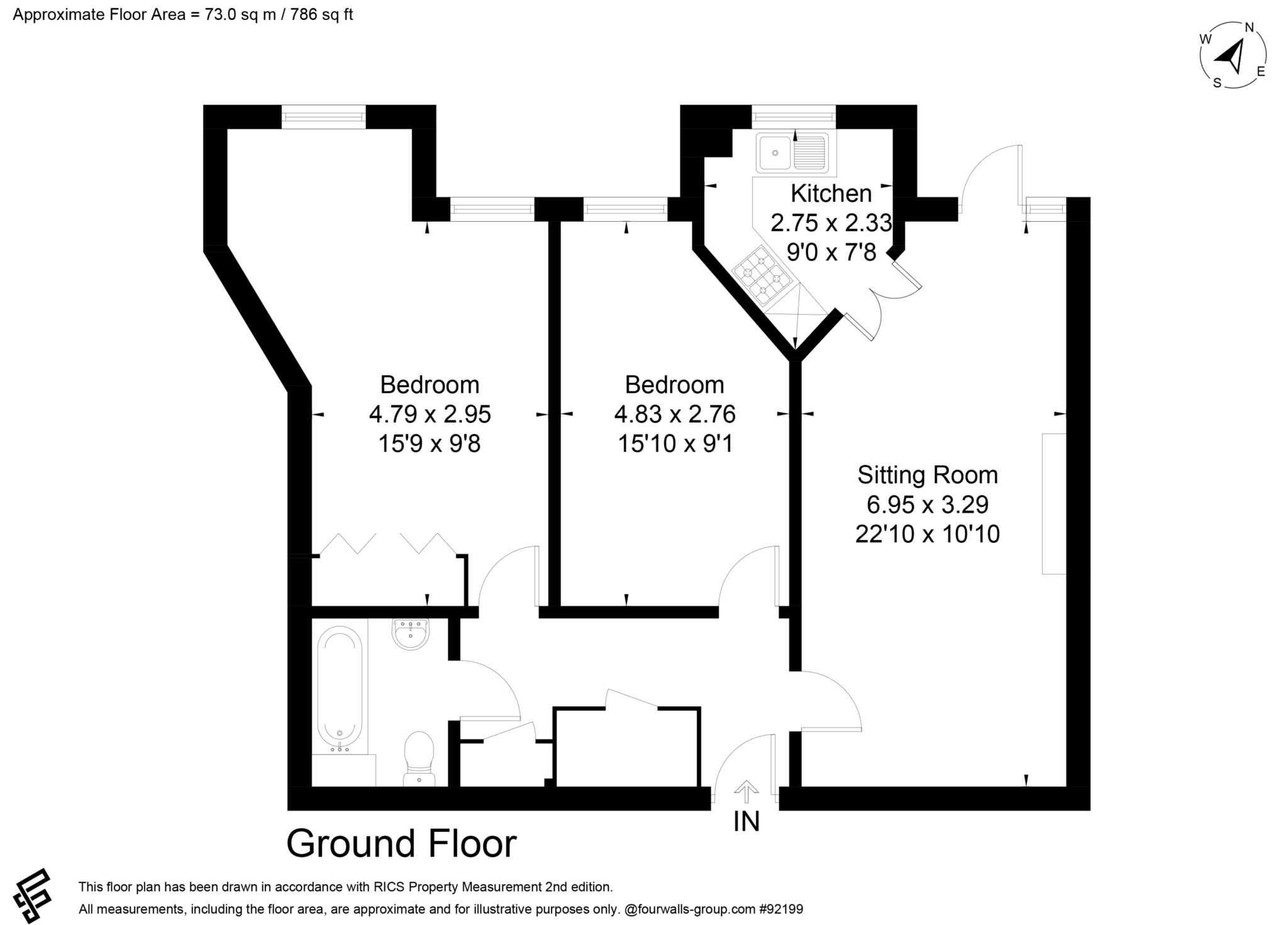 This larger-than-usual ground floor two-bedroom apartment offers direct access to a patio and the communal gardens. The accommodation comprises of a bright and spacious living room with a feature fireplace with an electric flame effect fire and double doors that lead to a kitchen, which includes a window, a fitted hob, overhead extractor hood and oven. The hallway is wide and spacious, off which there are two storage cupboards. The bedrooms are double bedrooms, with the master bedroom benefiting from a extra area which is currently used as a dressing area. The bathroom has a shower over the bath. The apartment is being offered chain free.