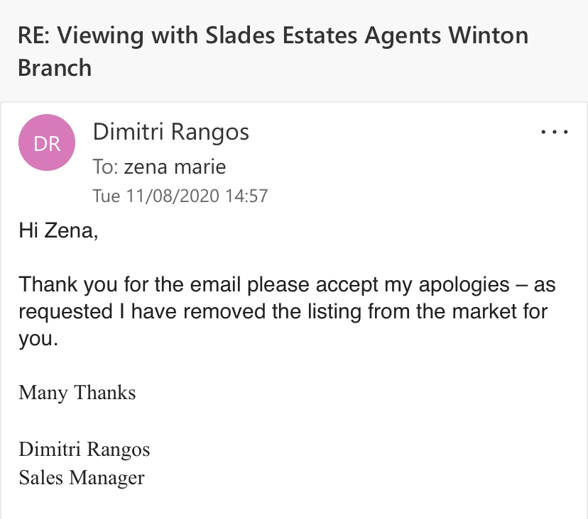Extremely rude customer care from Mr Slade himself I had a viewing on my house at 230 at 2pm I had a missed call from Slades so I rung back to check viewing was going ahead,I spoke to mr Slades himself,well how this man has a company is beyond me,I stated appointment was at 230 it was 230 and was viewing going ahead as I have two animals I have to put in a car and take out and today is exceptionally hot so wanted to check the missed call wasn’t them cancelling,mr Slades answers were it’s hot here in the office to ? (What does that have to do with my animals)? Then I got told it was 227 not 230 so I said is this your customer service because if so I need my house off the market with you his reply was ok bye bye now and he put phone down. No longer selling through them and would never recommend or do business with this company again Such a shame as the actual member of staff I spoke with To put my property on the market was extremely friendly and polite as u can see from email attached. He’s not responsible for his bosses actions and I hope he finds a lovely job soon as he deserves better.