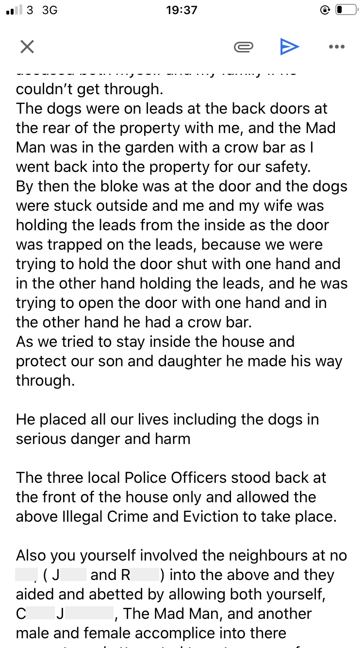 I was visiting my mum and dad and sister on the Saturday the 7th of November 2020 when my dad was told he had to hand the keys back that day, and I was there to give them support I had my dogs with me that day when IF, CJ, two of her accomplices and some Mad Man that IF brought with him. Under ... Read Full Review