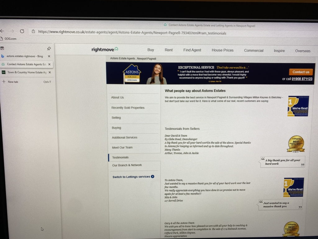 Astons are charlatans. They claim to have sold more properties in Newport Pagnell but they have not. They are also posting fake testimonials and awards on their website and rightmove profile. Allagents and Trading standards have been contacted. Avoid