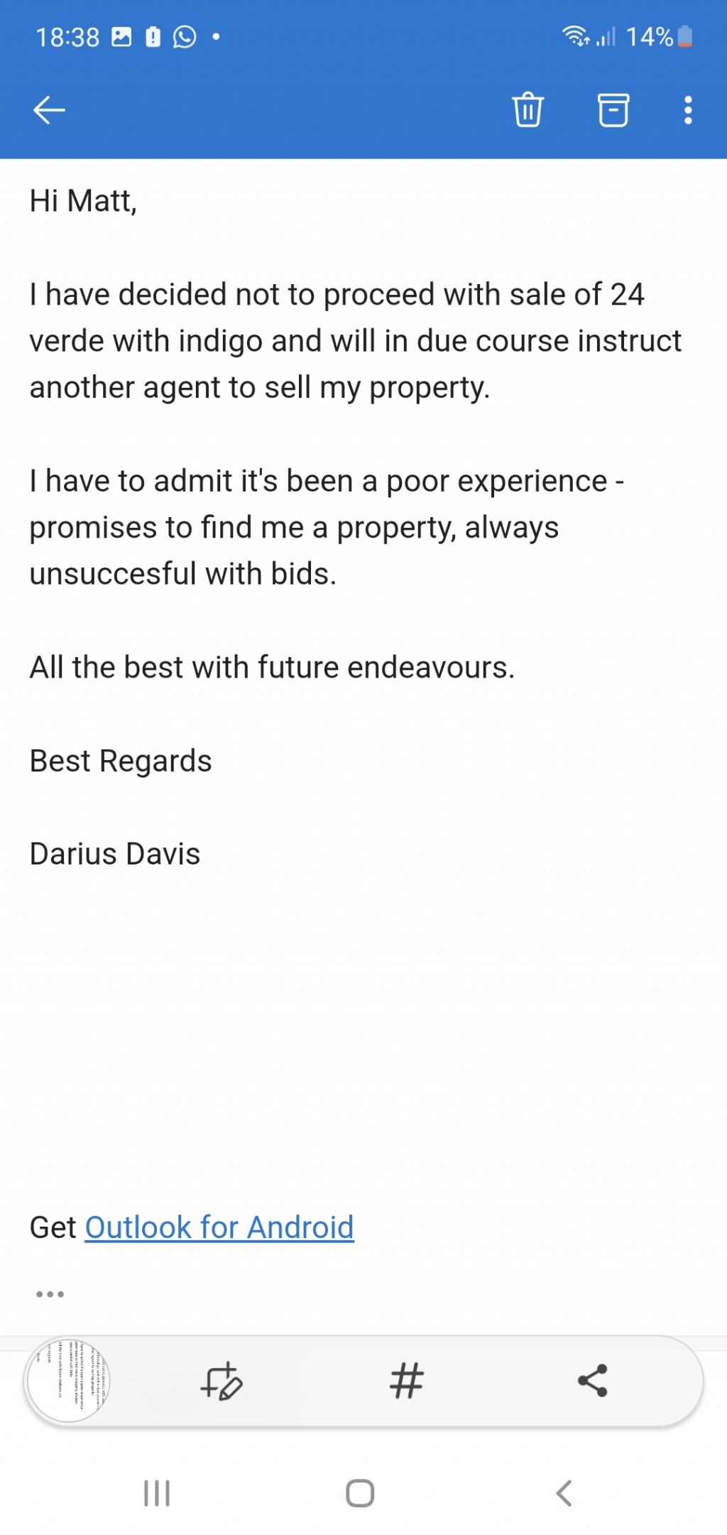 23 Dec 2024Can Estate Agents be Trustworthy, and do they know the market. Or are they only after their fees. I put to you the following, A house being marketed by Indigo Residental Estate agent in Ampthill at £550,000 (51 Elder Way Mk45 2HN.) Please see attached, that a Rics valuation was only recently done and values the property at £510,000 So what are Indigo doing placing such a figure on the property. £40,000 above valuation Is it to bump up there fees? What they don't say about this home. Are as follows. 51 Elder Way Ampthill. Mk45 2HN 1. The home is a Bpha shared ownership property which the sellers only own 40% But they will buy the other 60% to sell on to a buyer. ( To Avoid Stamp Duty) Thus stopping people who can't afford full asking price an opportunity to buy from Bpha, just so they can make a massive profit. As well as taking a shared ownership property off the market. 2. The house is in the middle of a social housing area, with a number of share ownership homes and rented social housing. 3. The Housing association is Bpha, and the buyers solicitor will have to deal with them as at any time could force the present owner to sell back to them there 40% at anytime prior to completion as they don't own 100% Plus this is a leasehold property at present. 4. The buyer mortgage could well be affected as the value is so much lower than the purchase price, therefor you could lose £1000's on fees and solicitors for nothing. Specialist solicitor will need to be appointed at extra cost. 5, The sellers have already lost 2 homes over the past 6 months. (They backed out.) But did not keep anyone informed. 6, The sellers refused a retention fee for one week, giving the intention they they were to leave unwanted items in the home. 7. You may be aware this property backs on the school, so the buyer should be aware of the school bell going off every hour. 8. There is also a farm school to the rear of the property, with chicken, pigs and sheep, as well as the smell which goes with this. (You should note what time chickens wake up, again I will state the smell is not to everyones taste.) 9., This home may look similar to others around but is far smaller as there is no loft room and the rear bedrooms do not extend over the kitchen. As well have reduced height due to the roof. 10. The front has been repainted, for some reason and thus this does not match the rest of the home and in the wet seems that it has not been done properly. ( This is only opinion) 11. There is stamp duty of 5% being £27,500. Payable on purchase. So if this is the home you are looking for, contact Mr Bradley Cooper, (Manager) Indego residential, Ampthill Who will be more that happy to show you round. As well as answer all your questions. So they can collect their fee. Remember they are not working for you, and it seems they don't care. Good luck in your home search All information is better than on information.