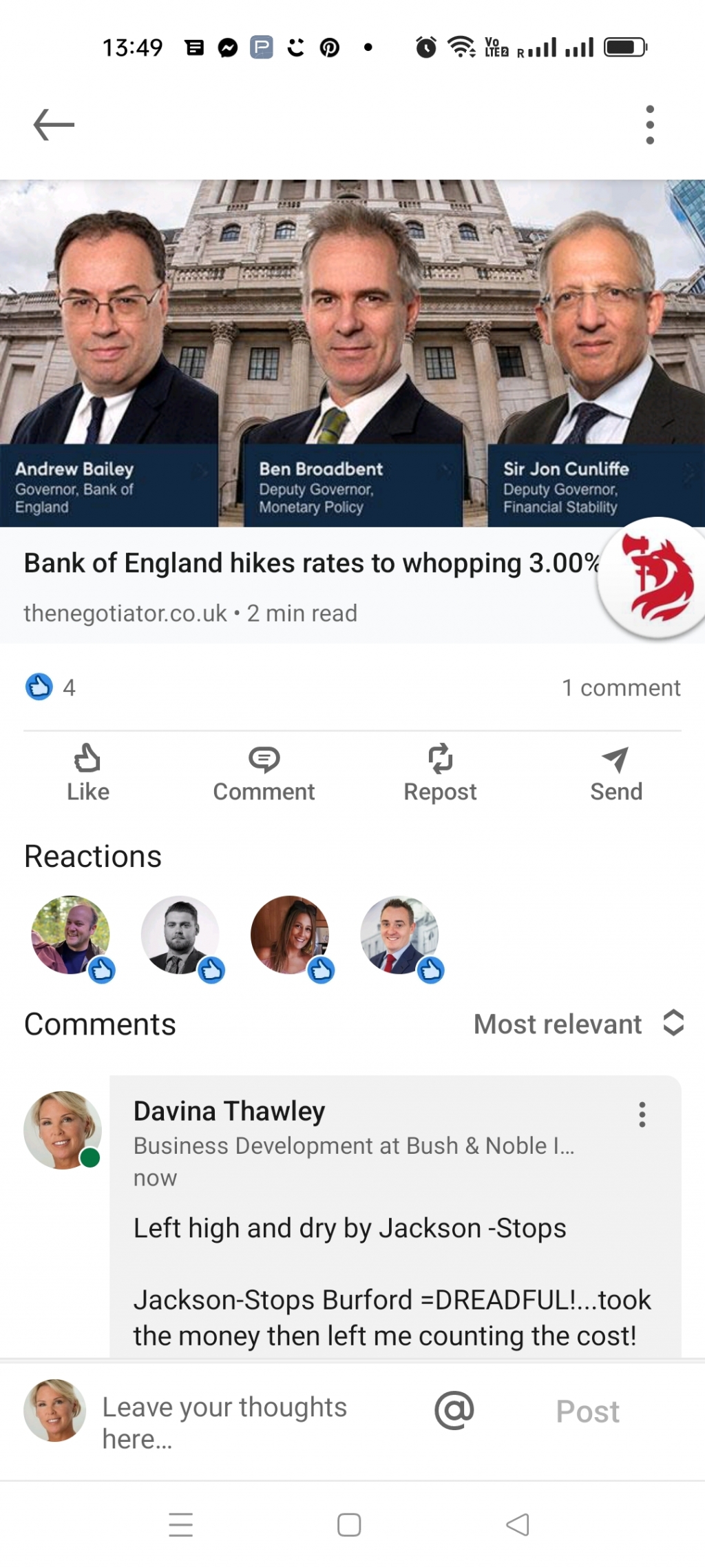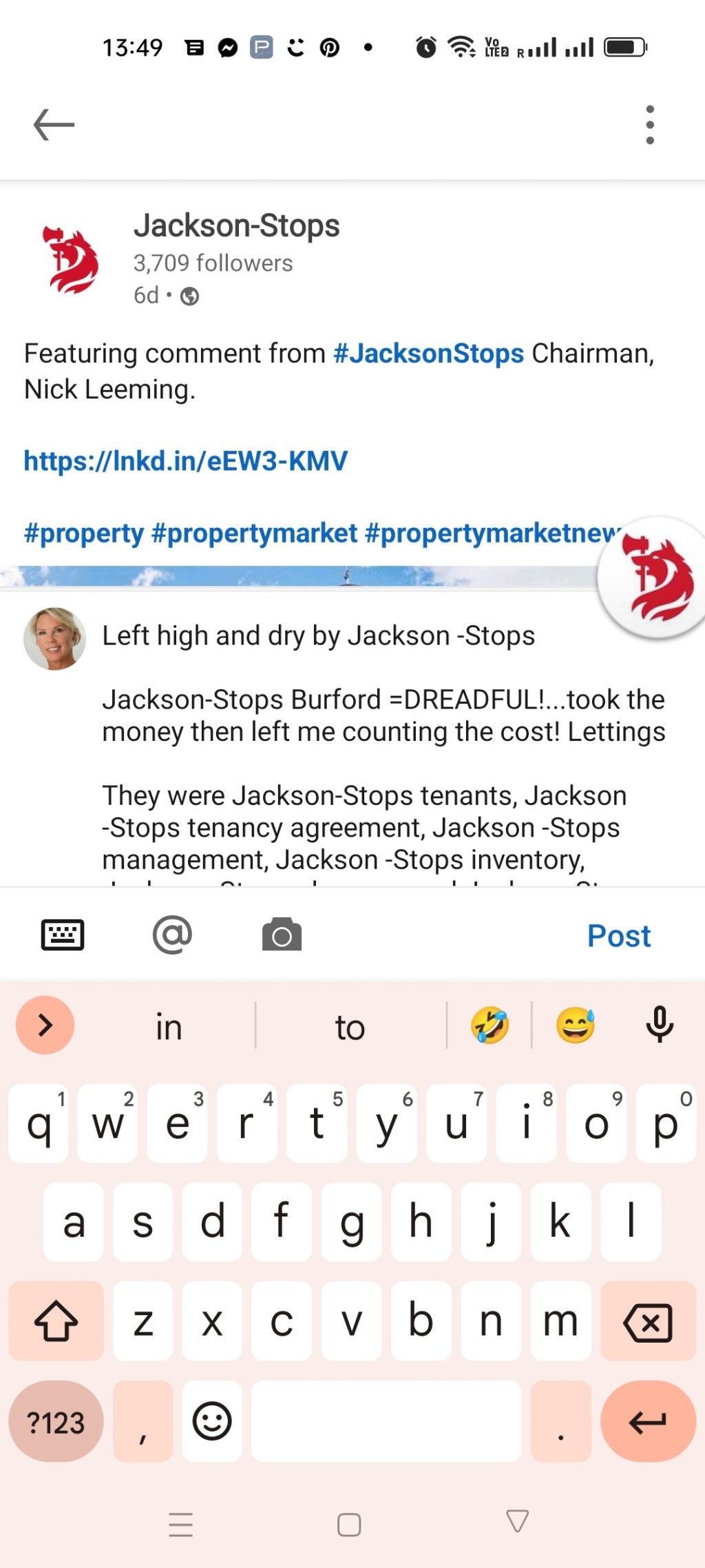 Left high and dry by Jackson -Stops Jackson-Stops Burford =DREADFUL!...took the money then left me counting the cost! Lettings They were Jackson-Stops tenants, Jackson -Stops tenancy agreement, Jackson -Stops management, Jackson -Stops inventory, Jackson -Stops cleaners, and Jackson-Stops... Read Full Review