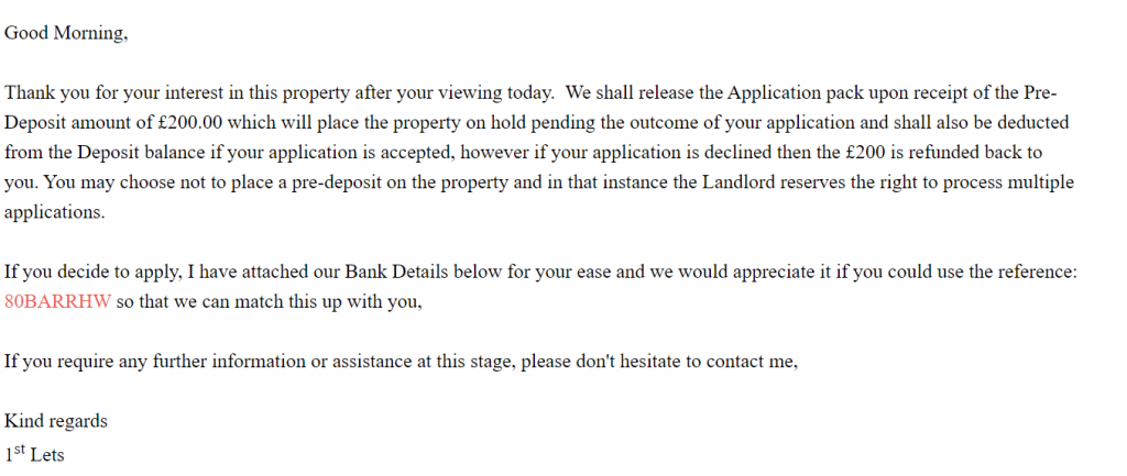 Can confirm that 1st let do use illegal holding fees. See the picture attached. When questioned about this they do not... Read Full Review