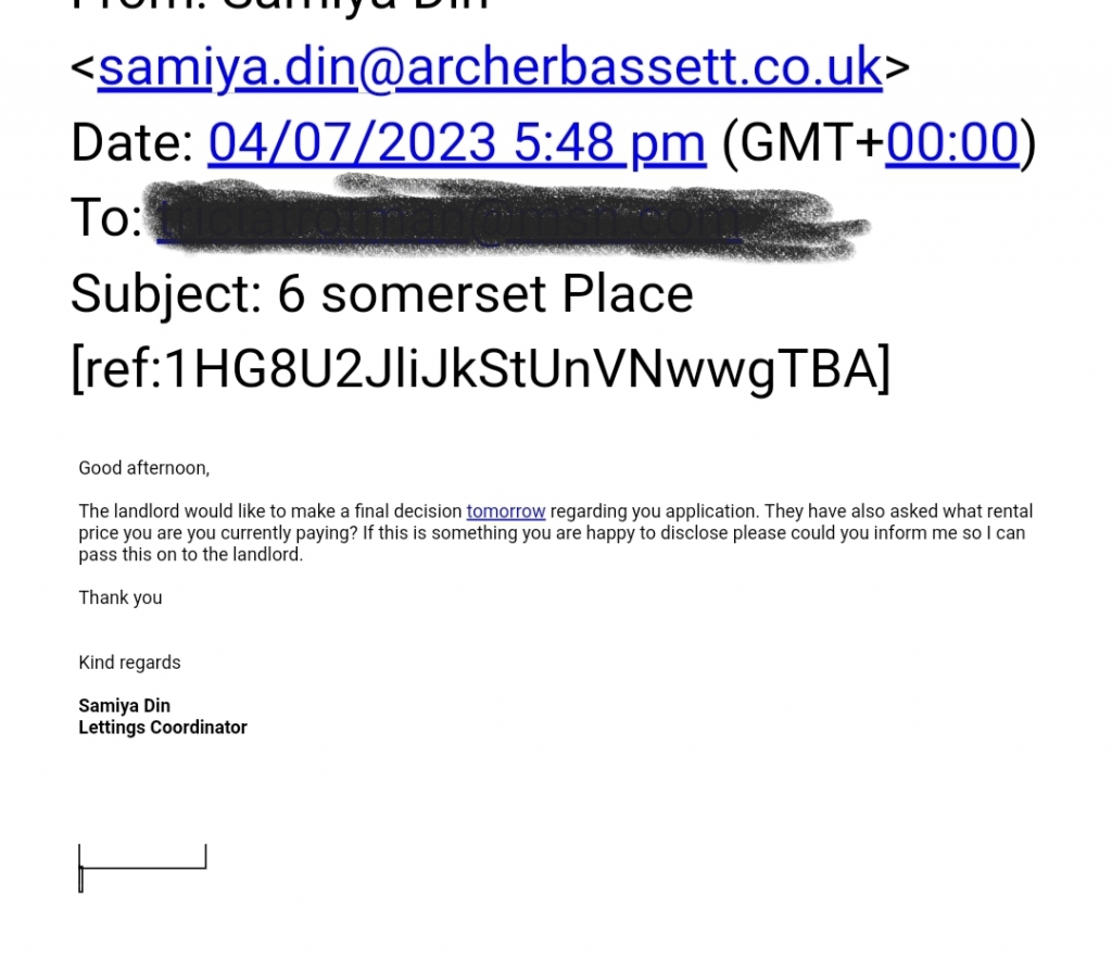 Absolutely disgusting service. If you are looking for a place don't go through this company. I enquired about an advertised property they said they had a lot of interest. I got completely turned of by the condescending tone, attitude, and response. I told them not to bother to book me in. These people called me back frantically a week later asking me to come view the property as the previous viewings yielded nothing. I was relocating from 4 hrs away in London and explained the distance and expense I would have to travel to do the viewing and would not bother to attend if I was not sure to let it. They assured me it would have a positive end result as they already had my personal circumstance details. The property was actually less rent pcm than the property I was moving from. So I eventually agreed travelled 4hrs to view. I mean lets forget that we now have technology that will allow remote viewings. I dont know how they ever survived covid. i viewed and was satisfied with the place and asked for next steps to let. Next day I get a message asking what was my current rent. I asked why this info was necessary. I was told the landlord was worried that I would not have enough disposable income. I was like, what? !!!! My income was above the 30x threshold, I was currently paying £3000 more per annum at my present property where I had lived for 8 years with no issues. Sounded a bit racist to me. I heard nothing back. I called and enquired only to be told by a rude receptionist that they had booked other viewings. I complained. Ended up speaking to the manager. When I brought discrimination laws to their attention the Manager promptly responded that the agent was Indian and couldn't be racist since obviously I was not caucasian and not Indian either. SERIOUSLY ARCHER BASSET? SO here is what I have discovered in my renting journey in Rugby, the new builds are being rented out to certain people that all look alike (neither black nor brown). If you don't belong to this category preferred group you are relegated to the properties they won't take i.e. the old ones, the overpriced ones, and those nit fit for human habitation. So all my years studying for my 2 university degrees, and other professional qualifications, my 999 credit score, and full time employment as a project manager are not important. What's important here is the colour of my skin and my Caribbean accent. DISGUSTING! Any decent landlords out there willing to offer a 3 bed in Rugby, preferably a new build.... let me know.