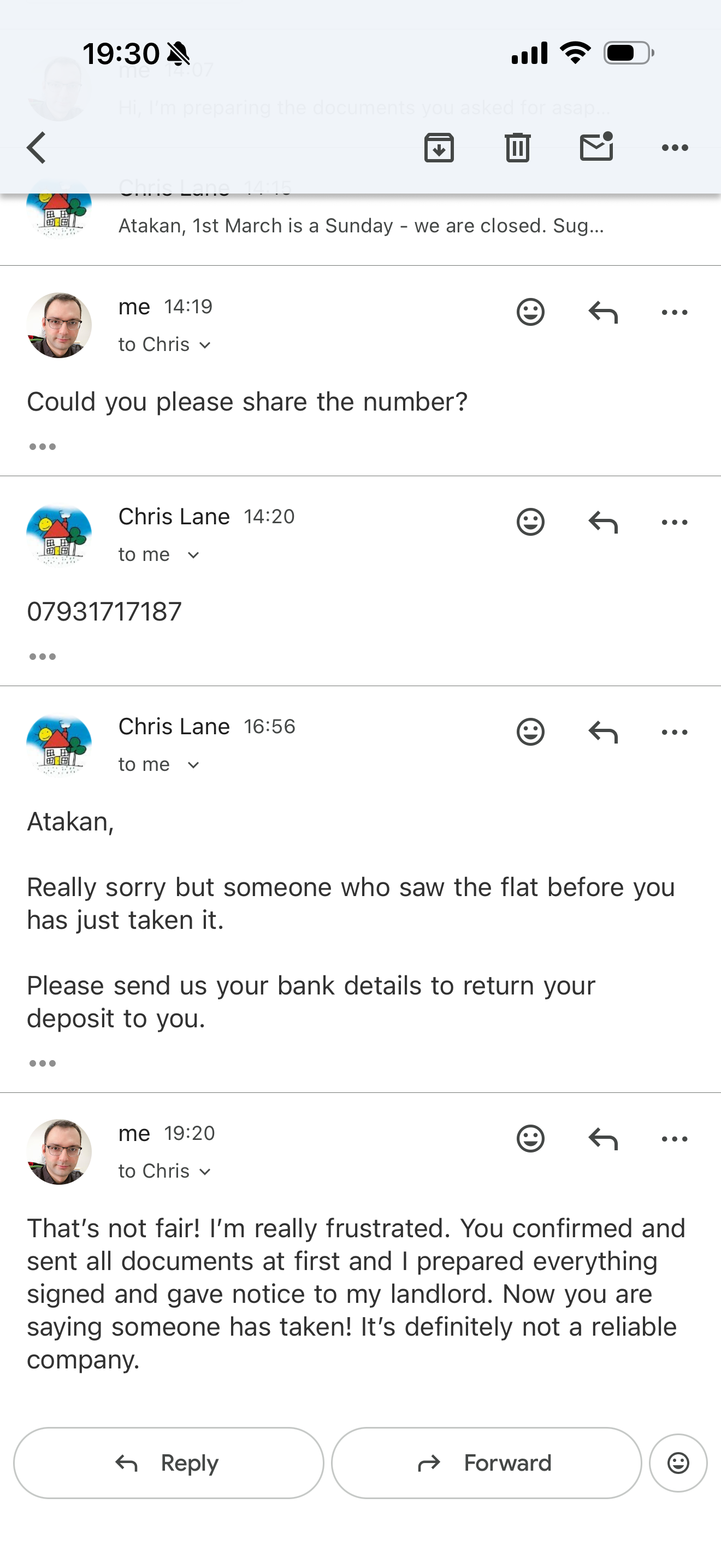 Everything was confirmed and sent all documents at first and I prepared docs and sent the deposit also gave notice to my landlord. Just after that they said sorry the flat was taken by someone.(within 2 hours maybe less) It’s definitely not a reliable company.